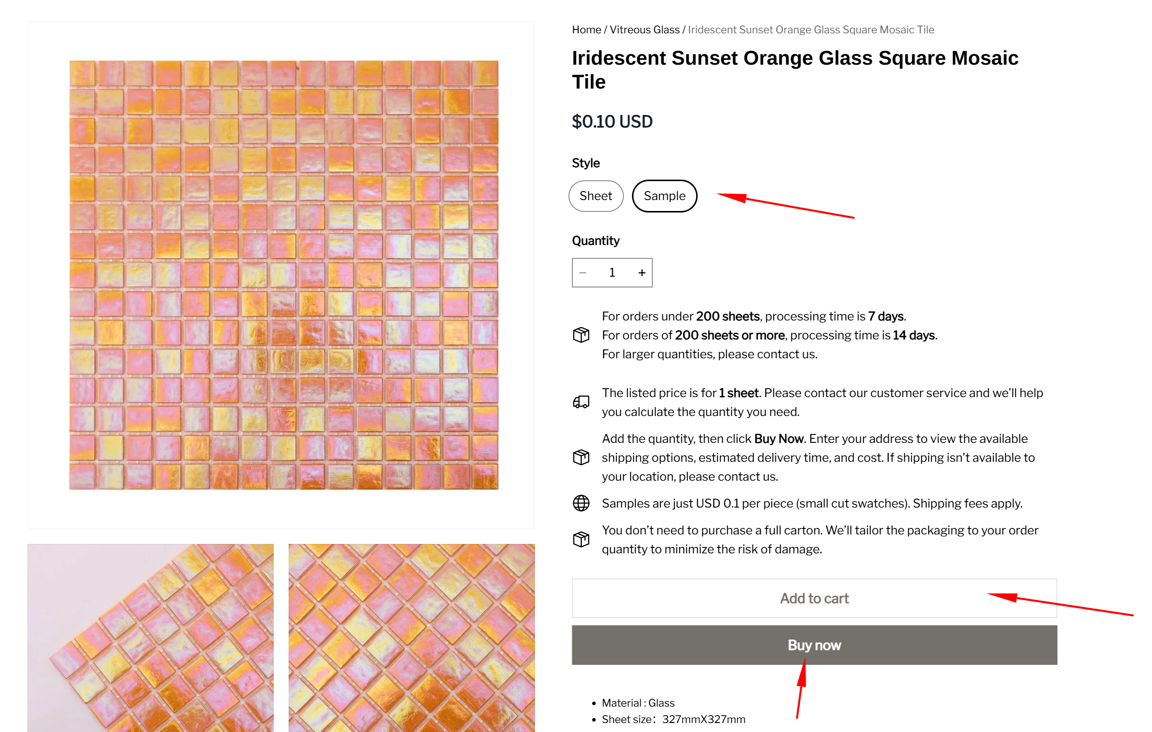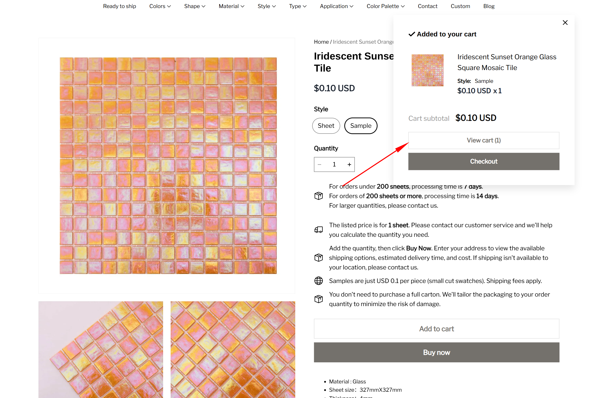 - Add the sample option to your shopping cart