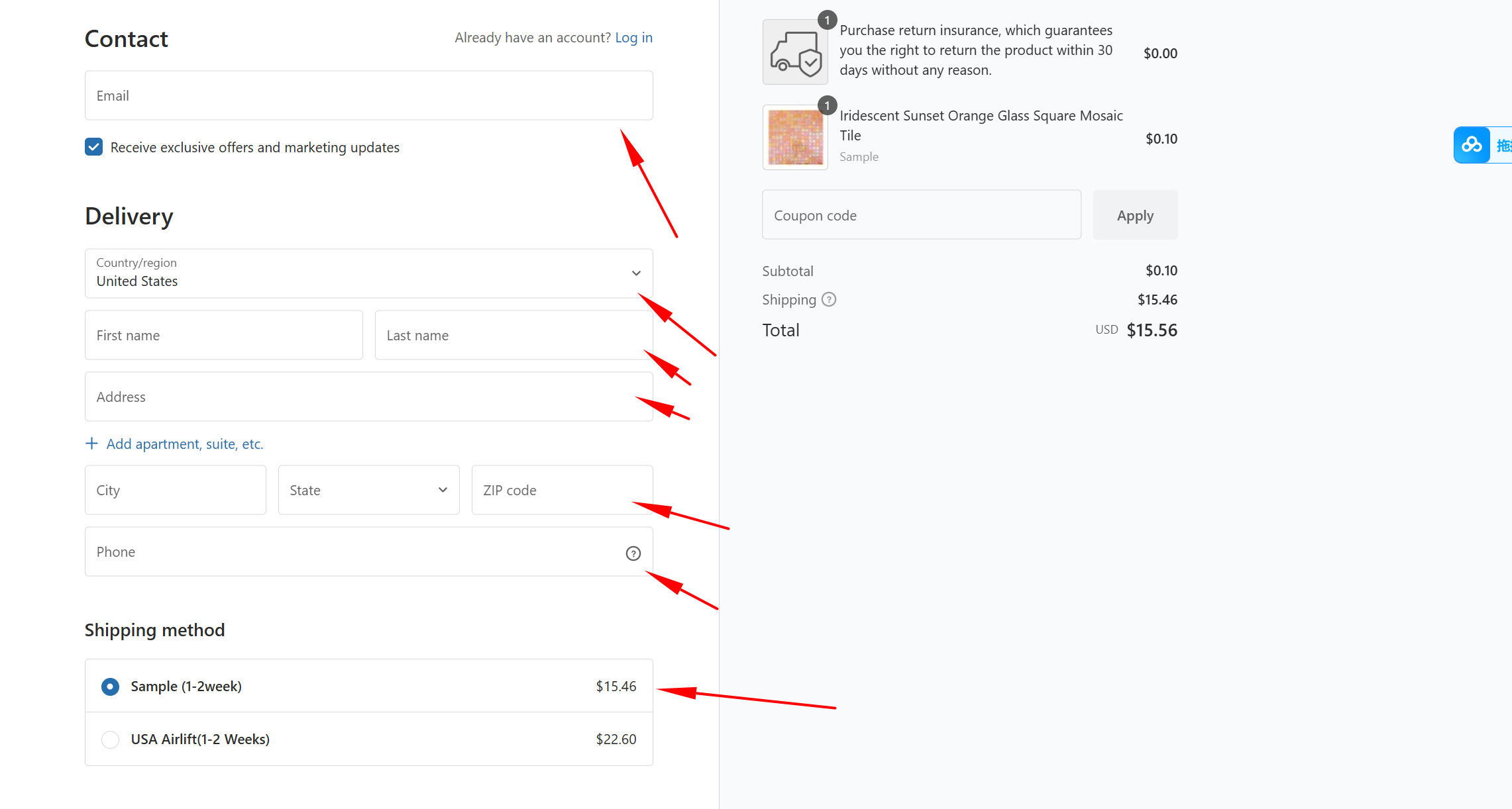 - Enter your shipping address